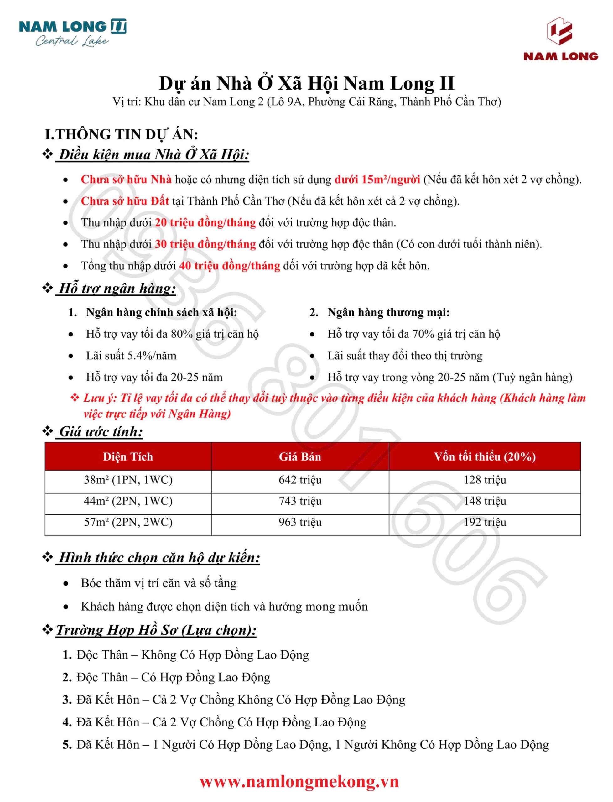 *Thông tin của khách hàng sẽ được bảo mật và chỉ sử dụng cho dự án Nhà ở xã hội Nam Long 2 Cần Thơ